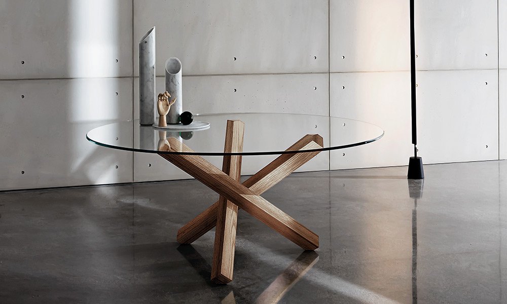 Aikido je jídelní stůl s čistým designem, který se stává středobodem každodenního života i každého prostoru díky svým teplým a prestižním materiálům. Jediná podnož ladí s kulatou, oválnou nebo čtvercovou deskou, zatímco dvojitá podnož doplněná obdélníkovou nebo tvarovanou deskou je ideálním řešením pro velké domácí prostory a zasedací místnosti.