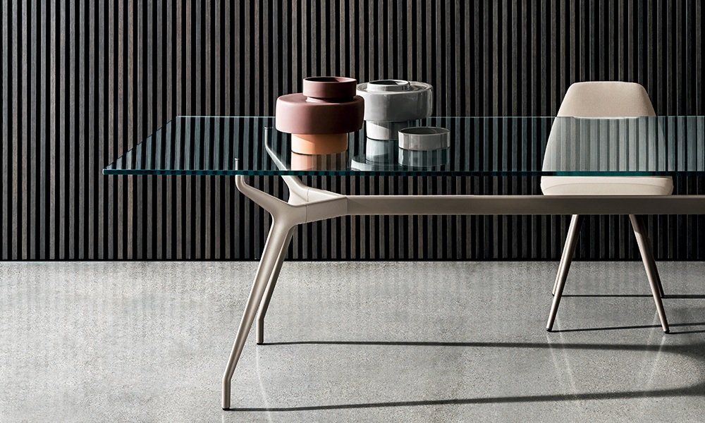 Tvarovaný stůl se vyznačuje nohami a konstrukcí z hliníku, dostupnými v různých povrchových úpravách, které podtrhnou jak minimalistické a moderní interiéry, tak i sofistikovanější a reprezentativní prostory.