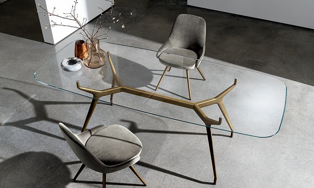 Deska stolu je k dispozici v různých rozměrech, materiálech a povrchových úpravách, což umožňuje maximální svobodu při výběru a harmonické přizpůsobení každému prostoru – rezidenčnímu i komerčnímu.