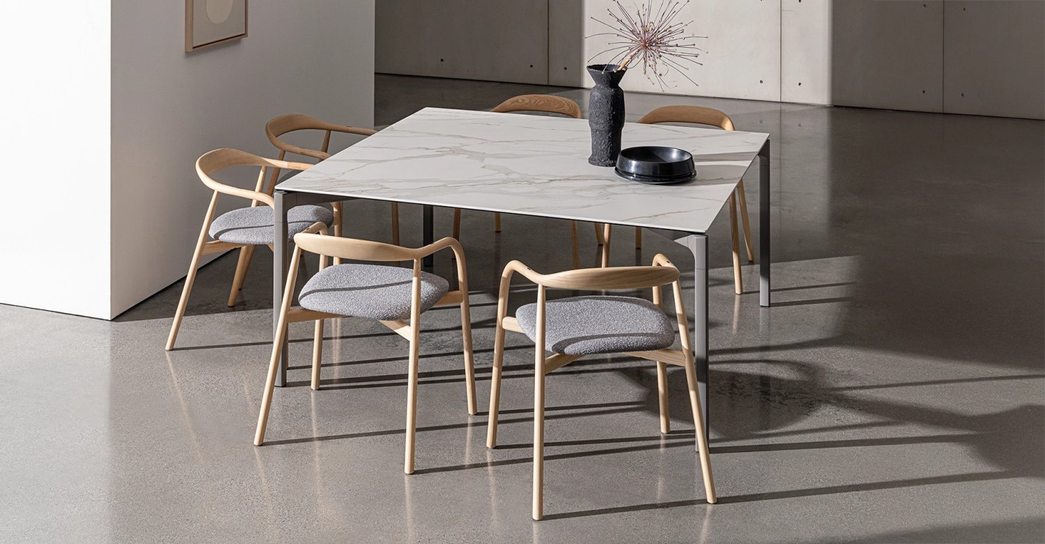 Tenká deska působí téměř beztížně a dodává interiéru vzdušnost i kultivovaný výraz. Minimalistická forma nechává vyniknout světlu, proporcím i materiálům, se kterými se setkává.