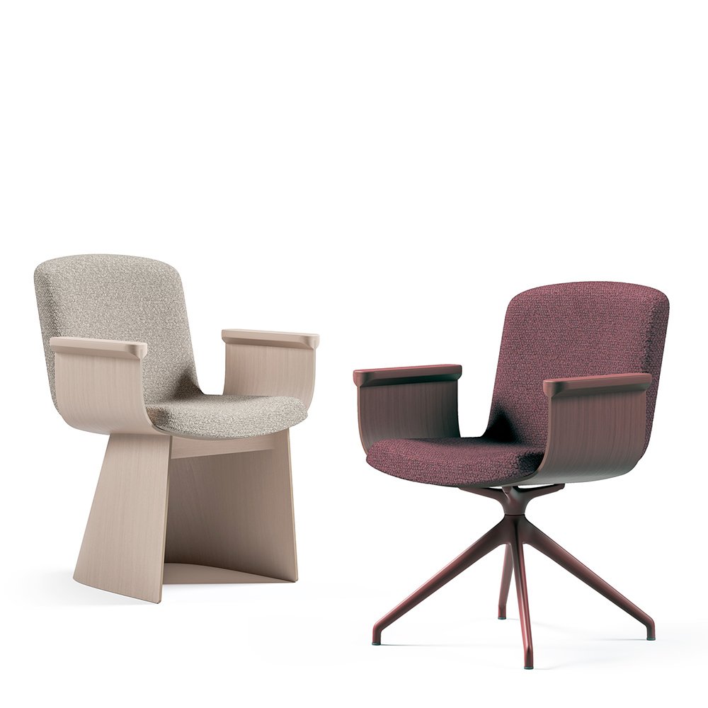Kolekce Lamella nabízí širokou škálu možností konfigurace. Skořepina může být kombinována s různými typy podnoží – od klasického kovového kříže až po elegantní dřevěnou ohýbanou podnož. Díky této variabilitě se židle Lamella hodí do nejrůznějších prostředí.