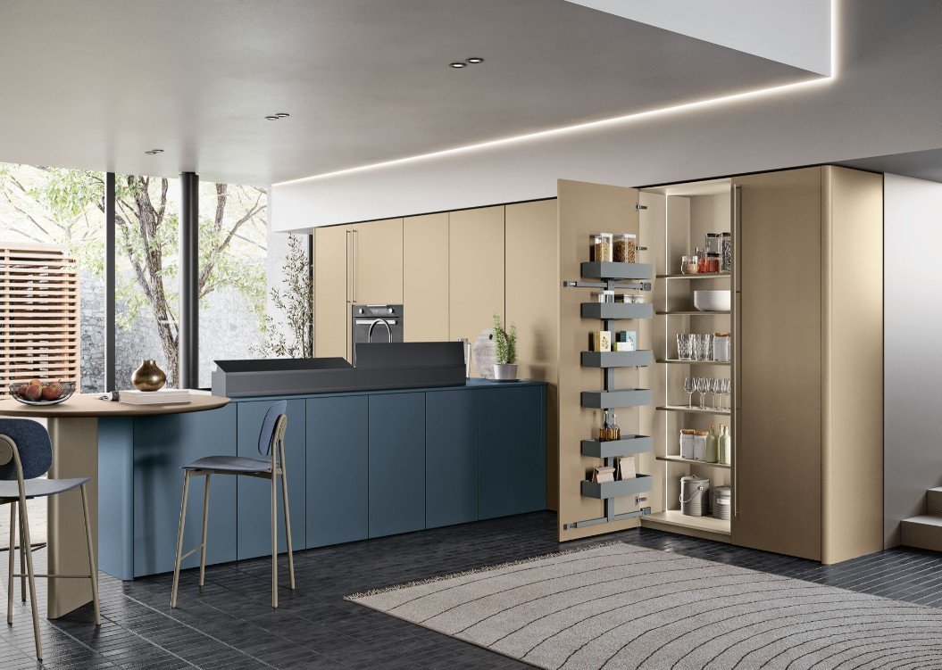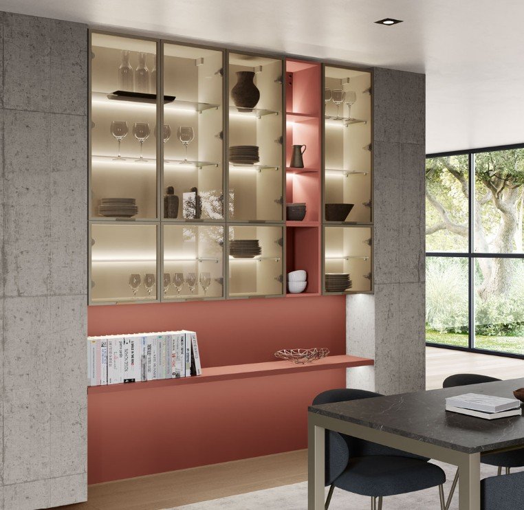 „Sistema Pass“ s výsuvem a soklem. Nový „Sistema Pass“ z kolekce „Hidden-K“ slouží k propojení dvou oddělených prostorů. Dostupný v různých barvách a provedeních.