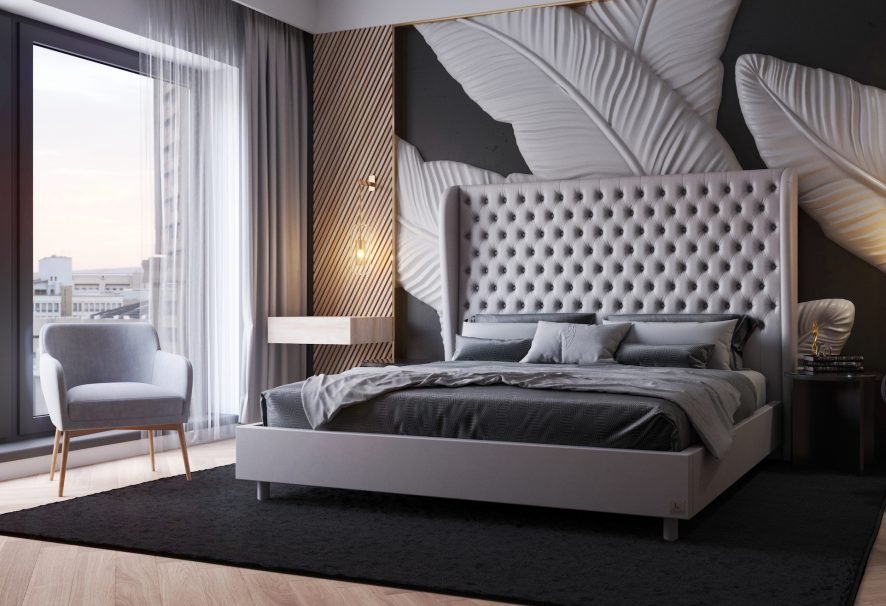 Dominantou postele je prostoro velkorysé čelo ve vintage stylu s bohatým zdobením ručně obalovaných knoflíků, ukončeno oboustranně jemně zaoblenými bočnicemi. Výrazné plasticity čela je dosaženo symetrickým vtahovaným velkého počtu knoflíků. Základem pro vyjímečný design je vysoká kvalita použitých materiálů a jejich dokonalé zpracování.